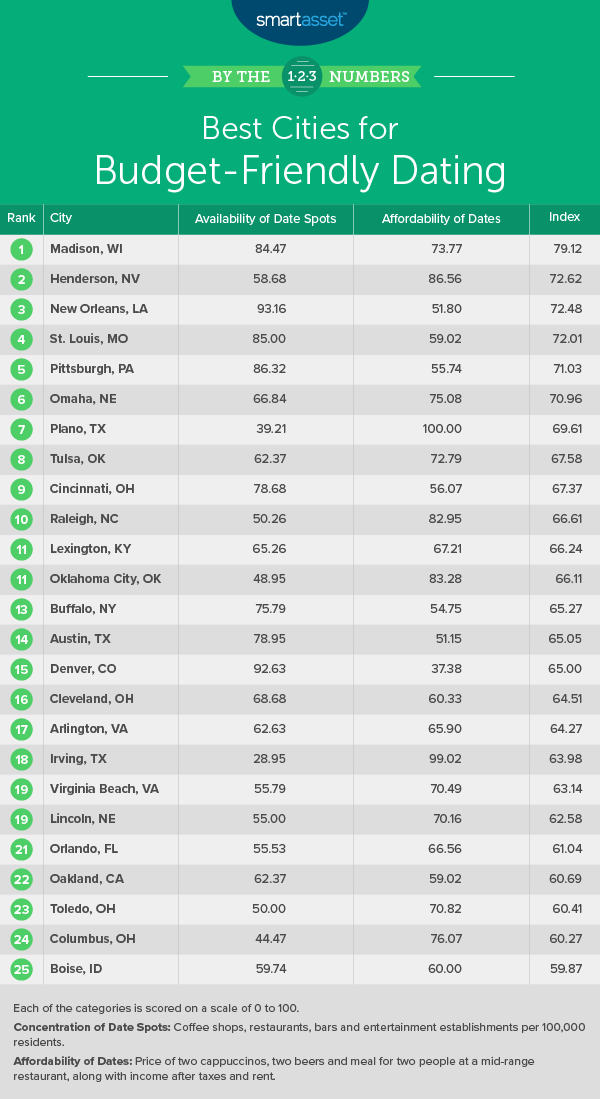 Whether you’re taking someone out for the first time or enjoying a well-earned night on the town with your partner of a decade, it’s important to be able to enjoy a nice date night. It is even better when you have plenty of options for where to go and know a night with your special someone isn’t going to break the bank. With that in mind, SmartAsset decided to find the best cities in the country for budget-friendly dating.