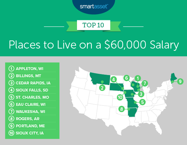 The median household income in the U.S. was $61,937 in 2018, according to Census Bureau data. But what kind of life that income affords you depends on many factors, including your spending and saving habits as well as the cost of living in the place you call home. With that in mind, SmartAsset decided to find the best cities in the country to live on an income of $60,000.
