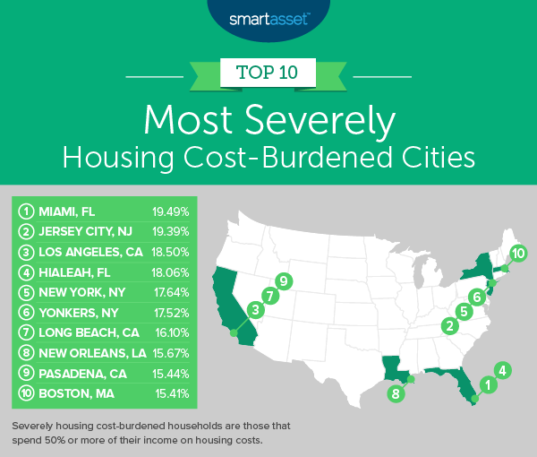 This is SmartAsset’s third study on the most and least severely housing cost-burdened cities. Check out our 2018 version here.