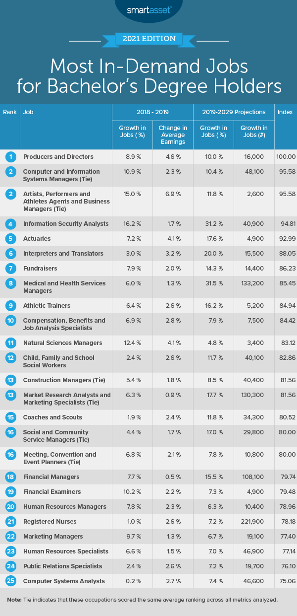 This is SmartAsset’s third annual study on the most in-demand jobs for bachelor’s degree holders. Check out the 2020 rankings here.