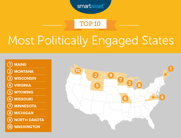 To find the most politically engaged states in the United States, SmartAsset analyzed data for all 50 states across the following metrics: