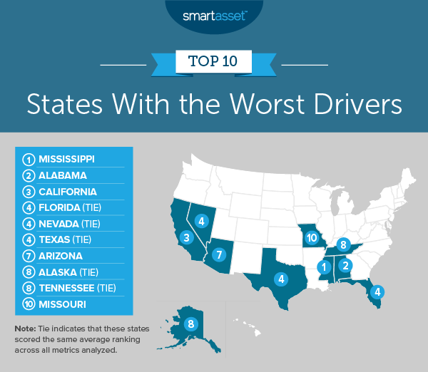 This is SmartAsset’s third annual study on the states with the worst drivers. See the 2018 edition of the study here.