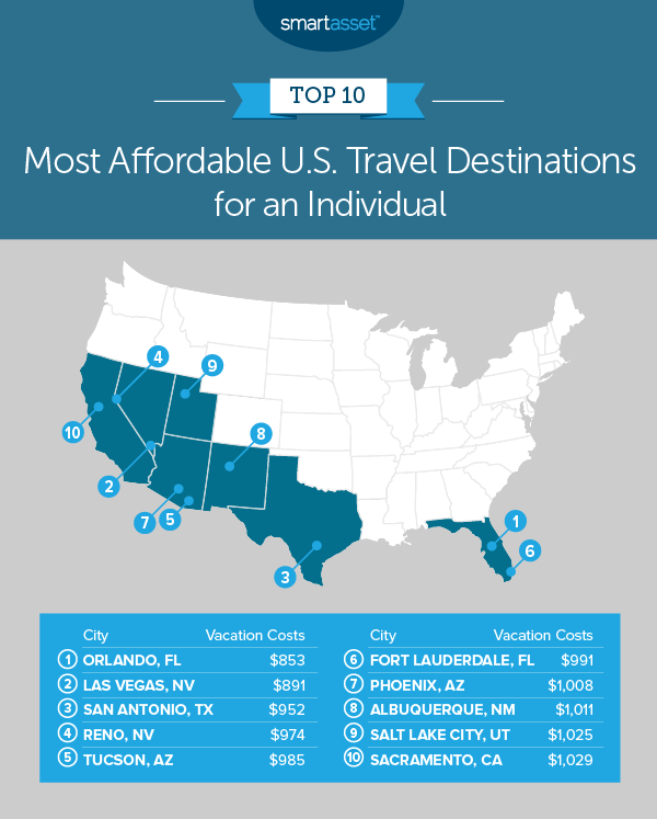 This is SmartAsset’s fifth annual look at the most affordable travel destinations in the U.S. Read our 2018 study here.
