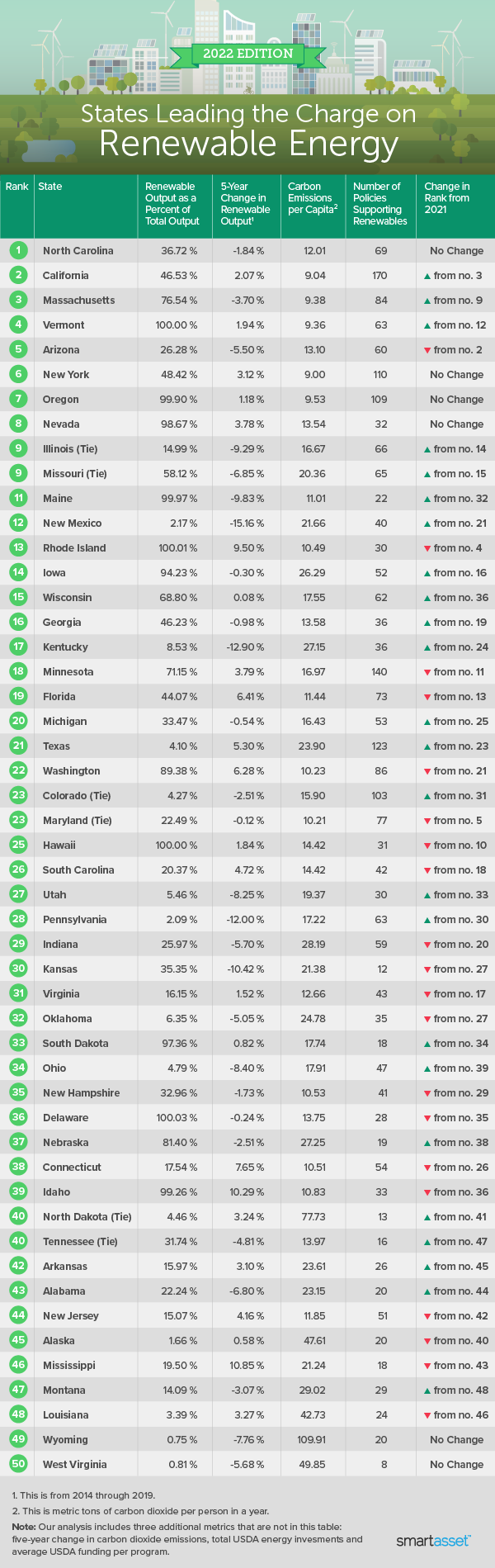 This is SmartAsset’s third study on states leading the charge on renewable energy. You can read the 2021 study here.