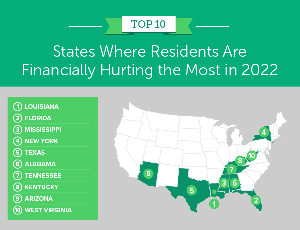 This is SmartAsset’s third annual study on the states where residents are financially hurting the most. Read the 2021 version here.