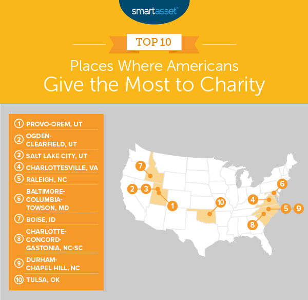 To find the most charitable places in the U.S., SmartAsset compared the top 200 metro areas by population across the following metrics: