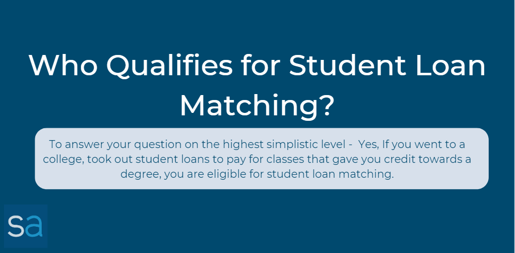 The majority of people that have incurred student loan debt are eligible for the student loan matching program; however, it is up to the employer if you’re offered this as a benefit.
