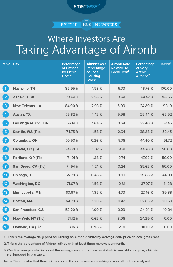 This is SmartAsset’s second annual look at where investors are taking advantage of Airbnb. Read the 2018 version of the study here.