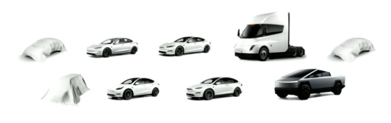 - Three new vehicles were shown under cover in the presentation, teasing upcoming products.