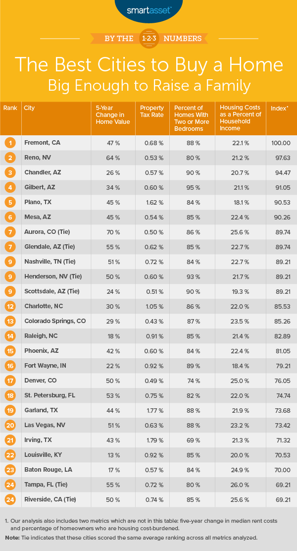 This is SmartAsset’s third study on the best cities to buy a family home. Check out the 2018 version of the study here.