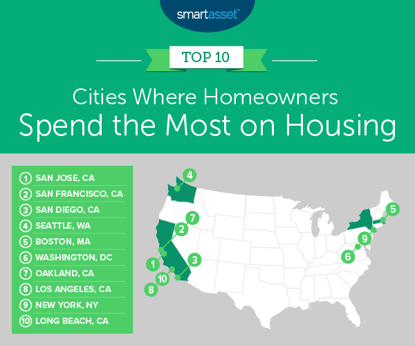 - West Coast homeowners spending the most. Seven of the top 10 places where people are spending the most on housing are on the West Coast, with six of those in California alone. All that California sun and surf is going to cost you, if you want to move to the Golden State.