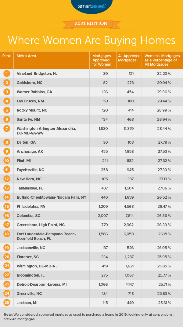 This is SmartAsset’s 2021 study on where women are buying homes. Check out the 2020 version here.