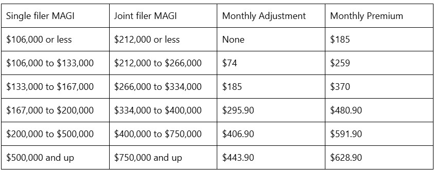 IRMAA Premium Table for 2025