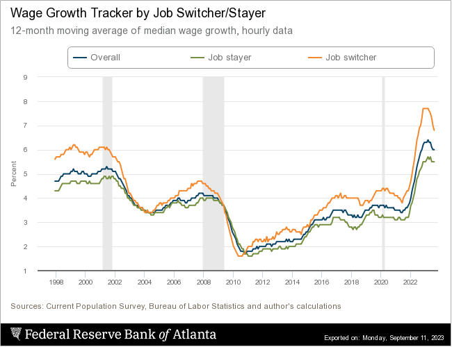 In the past two years, and especially the past 12 months, that advantage has doubled. In June, 2023, wages grew by an average 5.5% for workers who stayed put. Those who switched jobs averaged a 7.3% raise. In April, 2023 those numbers were 5.6% and 7.6%, respectively, and 5.5% for job-stayers vs. 7.7% for job switchers in January, 2023.